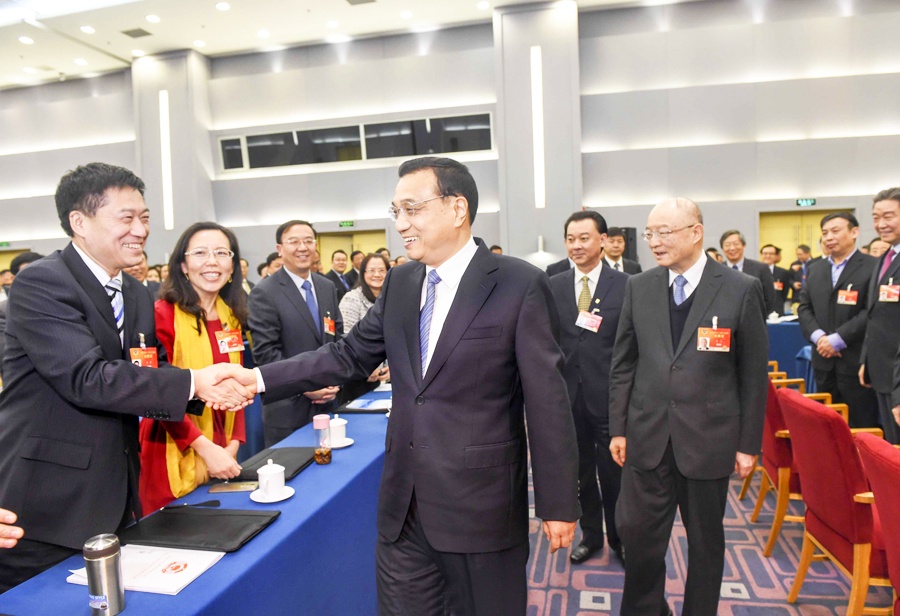 日前,李克强看望出席全国政协十二届三次会议的经济界、农业界联组会的委员,并参加讨论。 本报记者 王健枫 摄