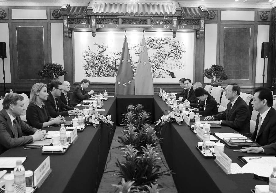 近日,国务委员杨洁篪在北京与欧盟外交和安全政策高级代表兼欧盟委员会副主席莫盖里尼共同主持第五轮中欧高级别战略对话。 丁林 摄