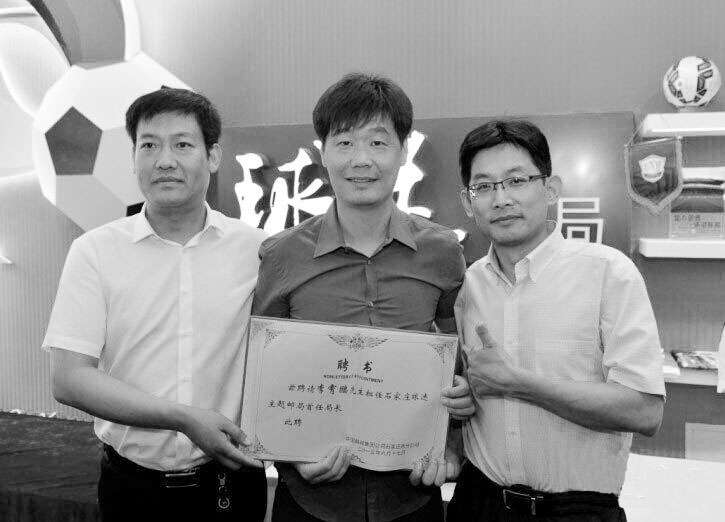 近日,河北省首家以足球为主题的邮局——石家庄“球迷”邮局近日正式营业,石家庄永昌足球俱乐部总经理李霄鹏(中)作为首任局长携永昌足球队主教练亚森和球员到场助阵,吸引了一众球迷和集邮爱好者前来“捧场”。翟羽佳 摄