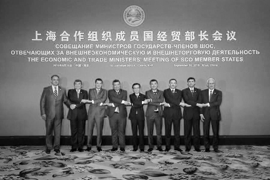 近日,上海合作组织成员国经贸部长第14次会议在陕西西安举行,来自上合组织成员国、观察员国、对话伙伴国的16国经贸部长,以及上合组织秘书处、实业家委员会、银行联合体,欧亚经济委员会出席了会议。这是部分出席会议的代表合影。 邢广利 摄