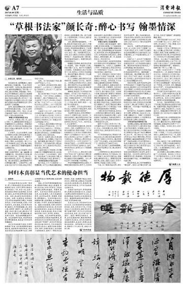 “草根书法家”颜长奇:醉心书写 翰墨