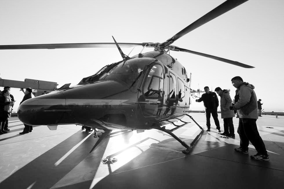 近日,一架贝尔429型直升机准备降落在北京国贸三期顶层停机坪。当天,一架120航空医疗救援直升机和一架商务直升机先后降落在中国国际贸易中心国贸大厦(国贸三期)顶层停机坪,这也是自2010年8月国贸三期投入使用以来,其顶层停机坪首次起降直升机,标志着这个北京城区内最高直升机停机坪正式启用。李贺 摄