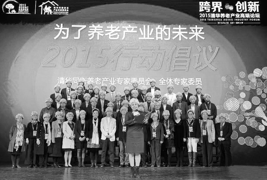 近日,与会嘉宾头戴“白发”,共同发起《为了养老产业的未来2015行动倡议》。当日,以“跨界创新”为主题的2015清华养老产业高端论坛在北京清华大学举行,与会嘉宾围绕国内养老服务体系建设、养老产业发展等议题展开讨论与交流。鲁鹏 摄
