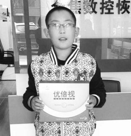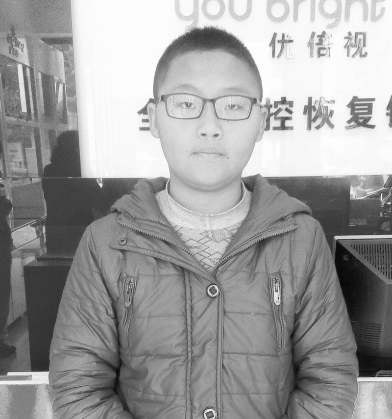 朱浩玮,男,12岁,四川达州职业中学, 戴优倍视一年多,左眼能看到1.0。