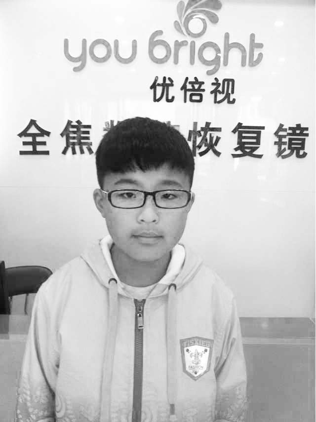 朴毅,男,14岁,唐山十二中学生,配戴优倍视一年半左右眼各降25度。