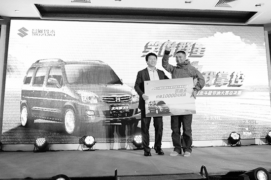 本届节油赛总决赛与以往不同的是共分为两个赛段——百公里外挂油箱节油赛和环渤海挑战赛,节油冠军成绩是由两个赛段综合成绩而成,来自江西的参赛选手郭年苟以总成绩3.39L\百公里荣登节油王宝座,昌河汽车销售公司总经理王德惠亲自为他颁发了奖杯。而上届节油王孙振兵则在环渤海挑战赛中创下用30L油跑出956公里的驾驭奇迹。